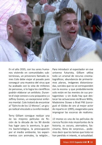mo mental. Cole tratará de encontrar Madeleine Stowe o Brad Pitt (consi-